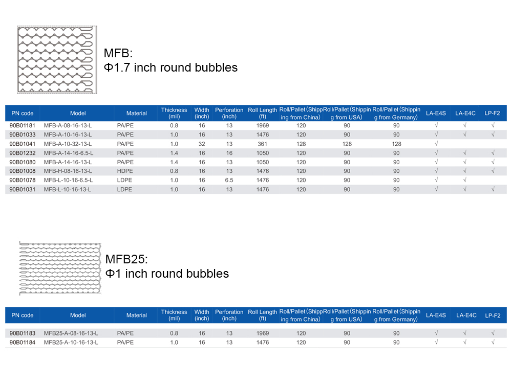 LockedAir PA/PE air bubble film is polymer material with nylon barrier. The air bubble bag is stronger tensile strength, high-temperature resistance, and more friction resistance than standard films.