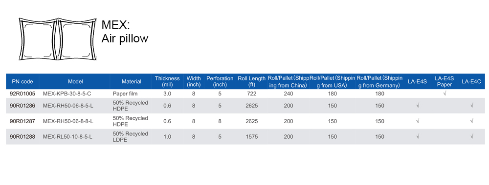 LA-E4S is a business-class air cushioning system that produces pillows and bubbles on demand for erasing, wrapping, and cushioning applications.